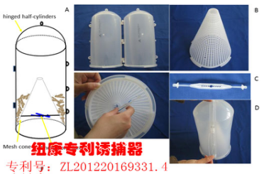 化學(xué)信息素群集誘殺技術(shù)裝置由誘捕器、誘芯和接受袋組成。由于不同害蟲(chóng)的行為習性不一樣,要選擇相對應的合適誘捕器,誘芯和誘捕器須配套使用。誘捕器可以重復使用,平時(shí)只要在使用一段時(shí)間后更換誘芯。誘捕效果直觀(guān),防治成本低,操作簡(jiǎn)便又干凈,農民非常容易接受。通過(guò)近10年的示范試驗和推廣,我們總結出使用好該技術(shù)幾個(gè)要點(diǎn),即OPTM(Optimization)。